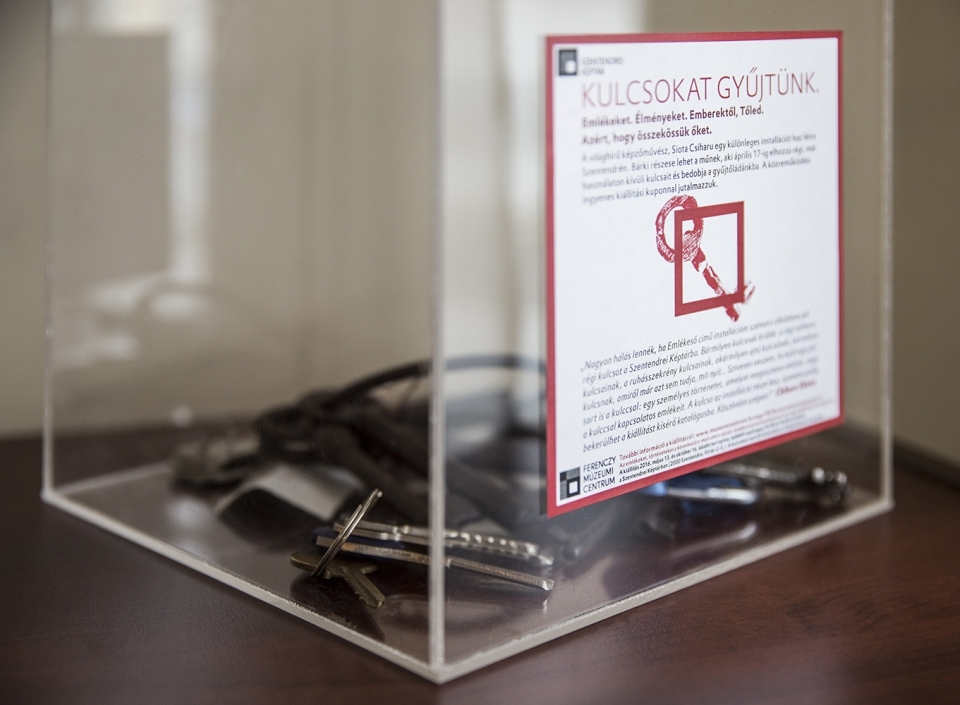 Chiharu Shiota, világhírű japán művész Szentendrén megvalósuló, Emlékeső című installációjához járulhat hozzá bárki, aki a kijelölt gyűjtőpontokon leadja használaton kívüli, asztalfiókokban kallódó kulcsait. A művész és a Ferenczy Múzeumi Centrum 15 ezer kulcs összegyűjtésére indított országos kampányt, melyhez itt Szegeden is bárki csatlakozhat. A leadott kulcsok mellé minden érdeklődő egy kupont kap, mellyel megtekintheti a megvalósult installációt 2016. május 13-tól a Szentendrei Képtárban.